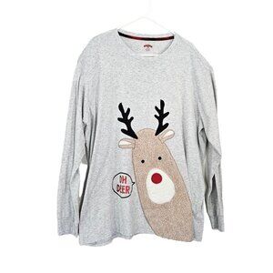 Holiday Time X-Mas 3D Reindeer Fuzzy “Oh Deer” Graphic Gray T-Shirt -2XL