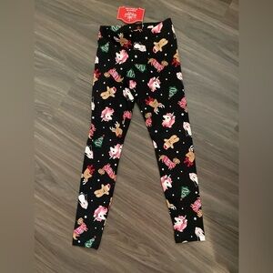 Holiday Time girls Black and Red Leggings with Christmas Pattern size 6/6X