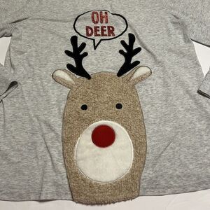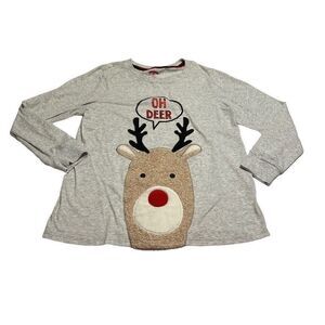 Holiday Time Womens Reindeer Soft Fuzzy "Oh Deer" Graphic XMAS Shirt Size M Grey