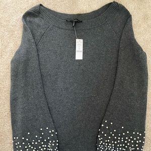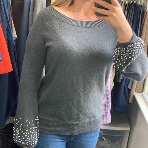 Ready to sparkle?! Great holiday shirt. Sleeves are weighted from the sparkle. The sleeve ends are also puffy.