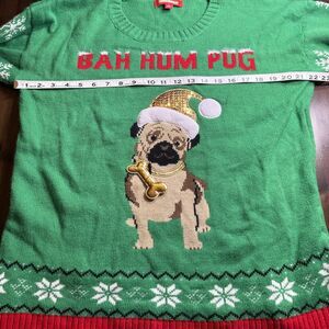 Holiday Traditions Bah Hum Pug Christmas Sweater Sequin Pug Dog Snowflake L