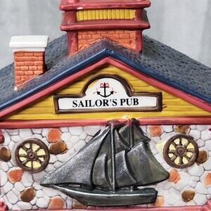 Holiday Traditions Lighted Porcelain Sailor's Pub in Like New Condition with Working Light 8.5" Tall 9" Wide 5.5" Deep Item # 997372-MMI
