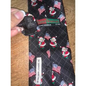 Holiday Traditions Men's Patriotic Santa Claus Silk Necktie Christmas USA Flag