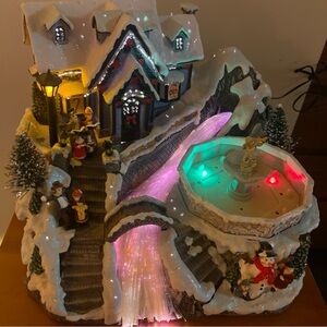 Holiday VillageVintage Fiber Optic Lighted House Decoration Working fountainRARE