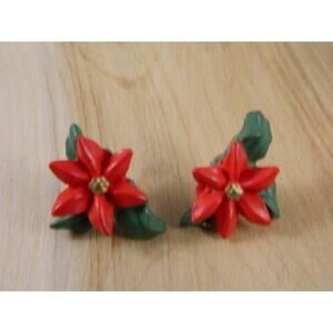 These are lovely holiday vintage red and green poinsettia post earrings from the 1980s. These lovely little holiday earrings are true to life and perfect for Christmas! They're made out of resin material that's very light weight.