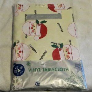 Holiday Vinyl Tablecloth Oval 52 x 70 New In Package Features Santa