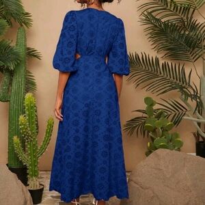 Holiday Woven Embroidered V-Neck Dress,Fall Puff Sleeve Dress,Fall Woman