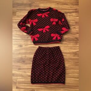 Adorable holiday sweater skirt set with bows
