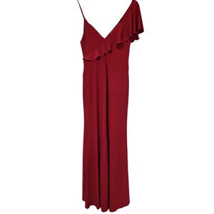 Holiday leena For Mac Duggal Asymmetric V-Neck Ruffled Gown Wine Size 4 NWT