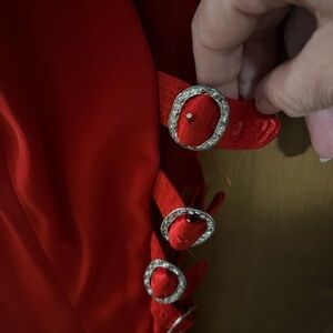 Beautiful red party/dinner dress. Zip up beck closure. Open side details