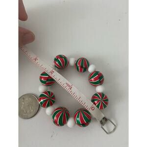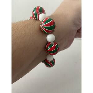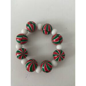 Cute Christmas bracelet chunky round red and green swirl and white beads fits a medium wrist new great for school going out parties work holidays vacation gifting skater grunge goth hippie boho retro rave casual twee cottage coastal grandmother art deco bohemian softgirl light academia ecofashion