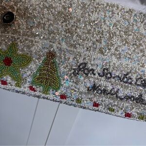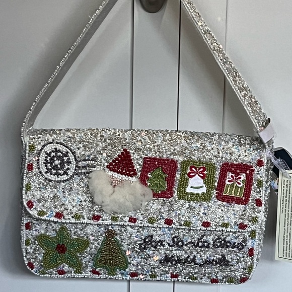 Celebrate the season with this festive silver beaded bag. Perfect for adding a touch of sparkle to any outfit.