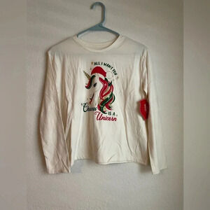 Holiday time girls plus size cream unicorn long sleeve shirt size XXL