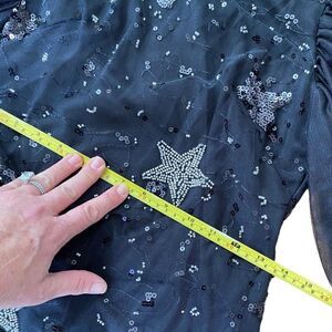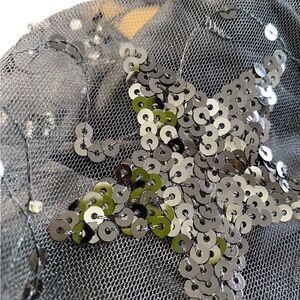 Fully lined, tule netting, sequins, rhinestones, back zipper.