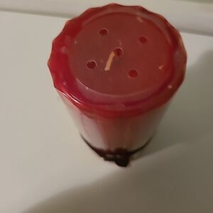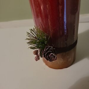 Pre-owned in new unused condition. Red 6 inch pillar candle with pinecone accent. has a 3 inch diameter.