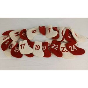 Holiday Christmas Stocking Garland Advent Countdown Embroidered Felt Red White