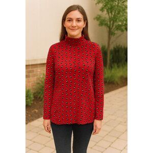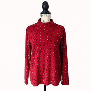 Holiday Editions Women’s XXL Red Scotty Dog Print Turtleneck Top | Long Sleeve F