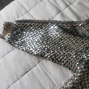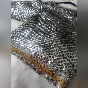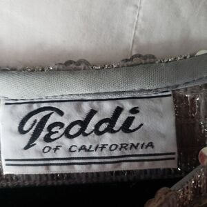 Vintage Rhinestone blouse with elastic waist. In fact it has stretch all over. Look at video for flat measurements. No flaws noted. All embellishments look intact.