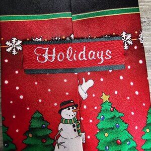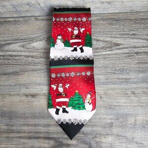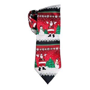 Holidays Festive Christmas Santa And Snowman Silk Necktie