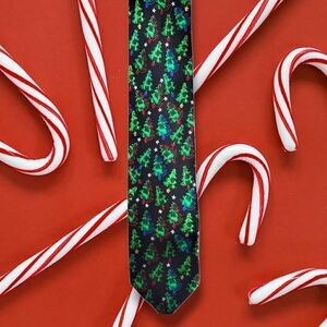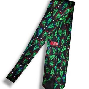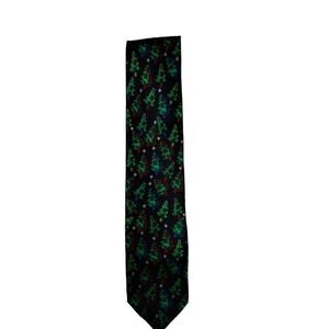 Holidays Christmas Tie Men Black Green Silk Trees OS