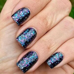 Color: Blue, Green, Pink & Purple Glitter on Black Background