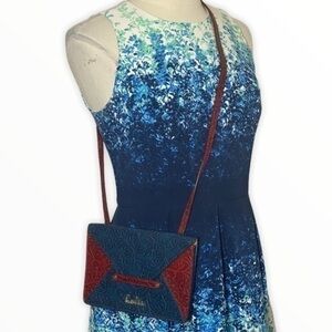 Blue/burgundy embossed leather