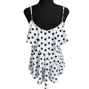 Holipick Black Polkadot White Tankini Layered Flounce Top - Bathing Suits