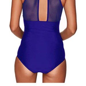 NEW without tags One Piece Swimsuit High Neck Plunge Mesh Ruched Monokini Hook closure High neck swimsuit design with neck hook closure and padded push up bra for support and shape. The sexy see-through mesh and deep plunge in the front make this bathing suit more trendy, charming and striking. The ruched pattern in front suppresses all the bulges and provides flattering tummy control, giving the swimsuit a stylish finish.