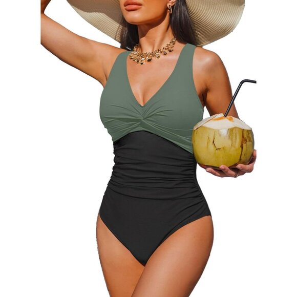 One Piece Swimsuit for Women: This one piece bathing suit combines a stylish V-neckline with a chic twist front detail that elongates the neck and adds a touch of elegance. The low back design elongate the torso and provide a hint of sexy allure.