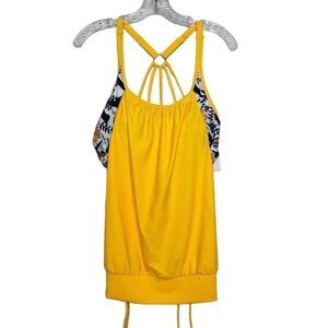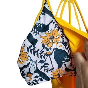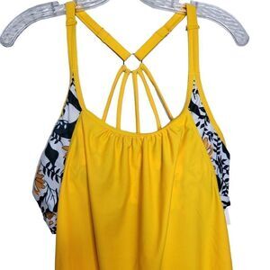 Holipick Push Up Tankini Swimsuit Two Piece Tummy Control Yellow Floral Size Lar