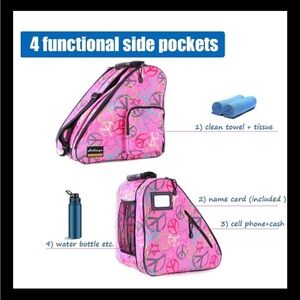 The Holisogn Ice, Inline, and Roller Skate Bag with a peace sign design in pink color features a zippered closure for easy access and security. This versatile bag is perfect for carrying skates of all types, making it a convenient and stylish choice for anyone involved in winter sports or roller skating. The brand, Holisogn, ensures quality and durability in this essential sporting goods item.