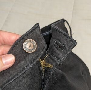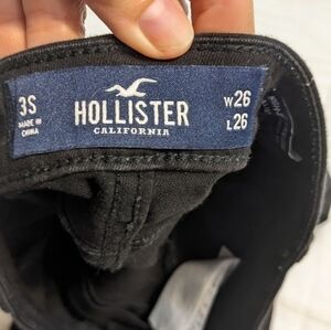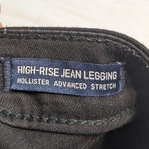Holister High Rise black Jean Leggings size 3 S they have a single button and zipper class, two steak front pockets and two real back pockets. they have a good amount of stretch the waist measures 13 in, The Rise measures 10 in, and the inseam measures 26 in. these are a good true black pair of pants/jeans