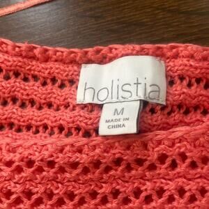 Holistia Salmon Pink Open Knit Pullover Sweater Womens Size Medium