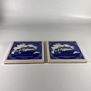 Pre-loved Lot of 2 Holland America Line Cruise Ships Ceramic Tiles Souvenir Coasters