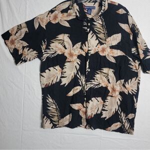 Holland America Line Mens Hawaiian Shirt XLarge Black Beige Floral Collar Pocket