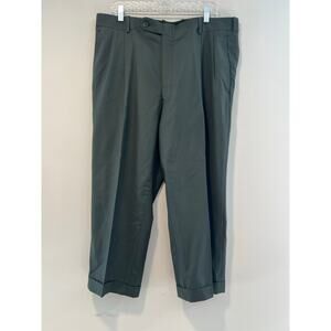 Holland & Sherry 2 Piece 3 Button Suit Dark Sage Green Pleated Pants 44 / 37 JL