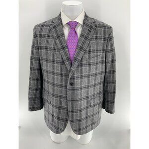 Holland & Sherry Blazer 44S Gray Plaid Wool Cashmere Func Cuffs 2B 2V YGI R4-73