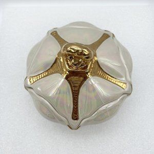 Holley Rose Iridescent 22K Gold Accent Footed Candy Jar Trinket Read.