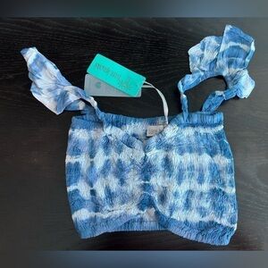 Hollie Top in Sabia Indigo White Tiare Hawaii NWT Size: O/S Tie-dye print • 100% rayon • Hand wash cold • Smocked bodice • Flutter shoulder straps