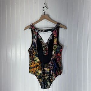 Hollie Watman Lace-Up 1PC Swimsuit Floral Vines Print Sz L High Tech Fabric NWT