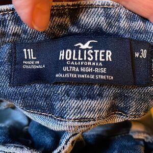 Hollister 11L W30 Ultra High-Rise paper bag waist tapered leg pleated at ankle.waist side to side 15.5”, rise 15” and inseam 26.5”.