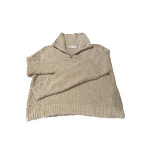 Hollister 1/4 Zip Sweater Women's Medium Beige High-Neck LS Soft Plush Cozy