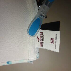 This Hollister 34B Bathing Suit Bikini Top in white and blue is designed with a padded underwire for excellent support and comfort. Its stylish design enhances your beach look.