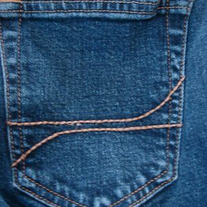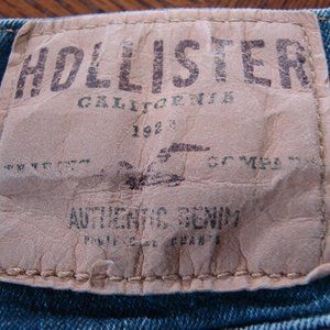 Hollister #3E0689 Button Fly jeans. Mid Tone wash with gold threading. Back pocket minimal design of lines. Front & back useable pockets.