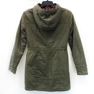 Hollister Abercrombie & Fitch Plaid Hooded Utility Green Parka Jacket Coat Small