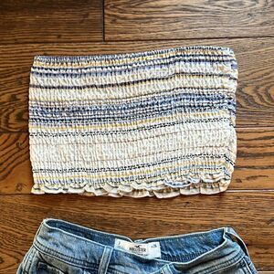 Hollister Asymmetrical Denim High Waisted Shorts and tube top C16