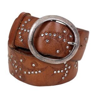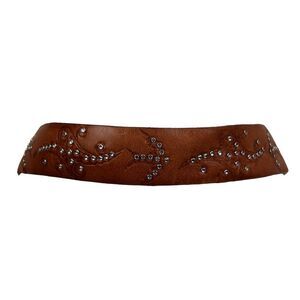 Hollister BROWN GENUINE LEATHER 1 7/8"Wd STUDDED CASUAL WOMEN'S BELT Sz M(B79