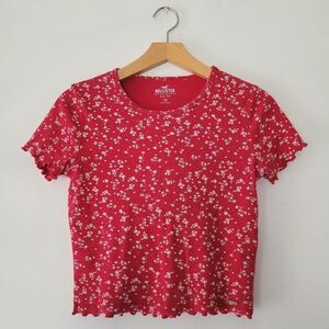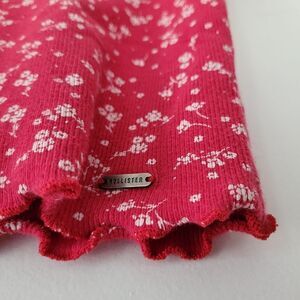 Hollister Baby Tee Lettuce Hem Floral Crop Top Deep Pink White Small