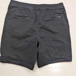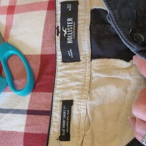 Classic black flat front a 7-in woven shorts in a slightly stretchy fabric by Hollister.