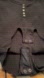 Sleek black bodysuit with ribbed texture. Features button-front detail. Ideal for versatile styling.